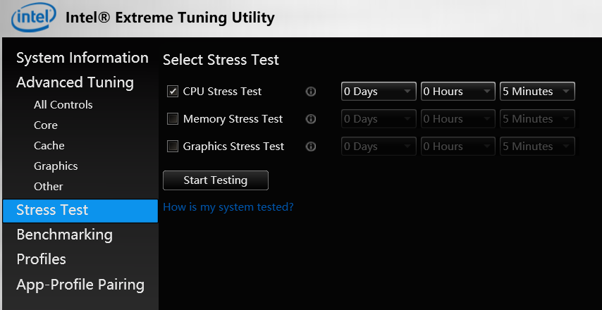 然后跑一下CPU压力测试(俗称烤机),勾上cpu, Start Testing。