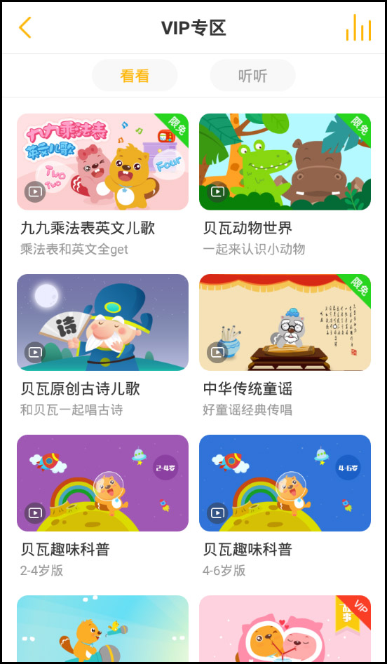 贝瓦儿歌是为0-8岁小朋友设计的儿童应用,涵盖国内外超过14,000部儿歌、动画、故事、绘本等原创及优质引进内容。一个应用就能满足小朋友入园前后看、听、唱、跳、学的成长需要,是1.8亿家长和孩子的共同选择,也是幼儿园老师儿歌教学的好帮手。
