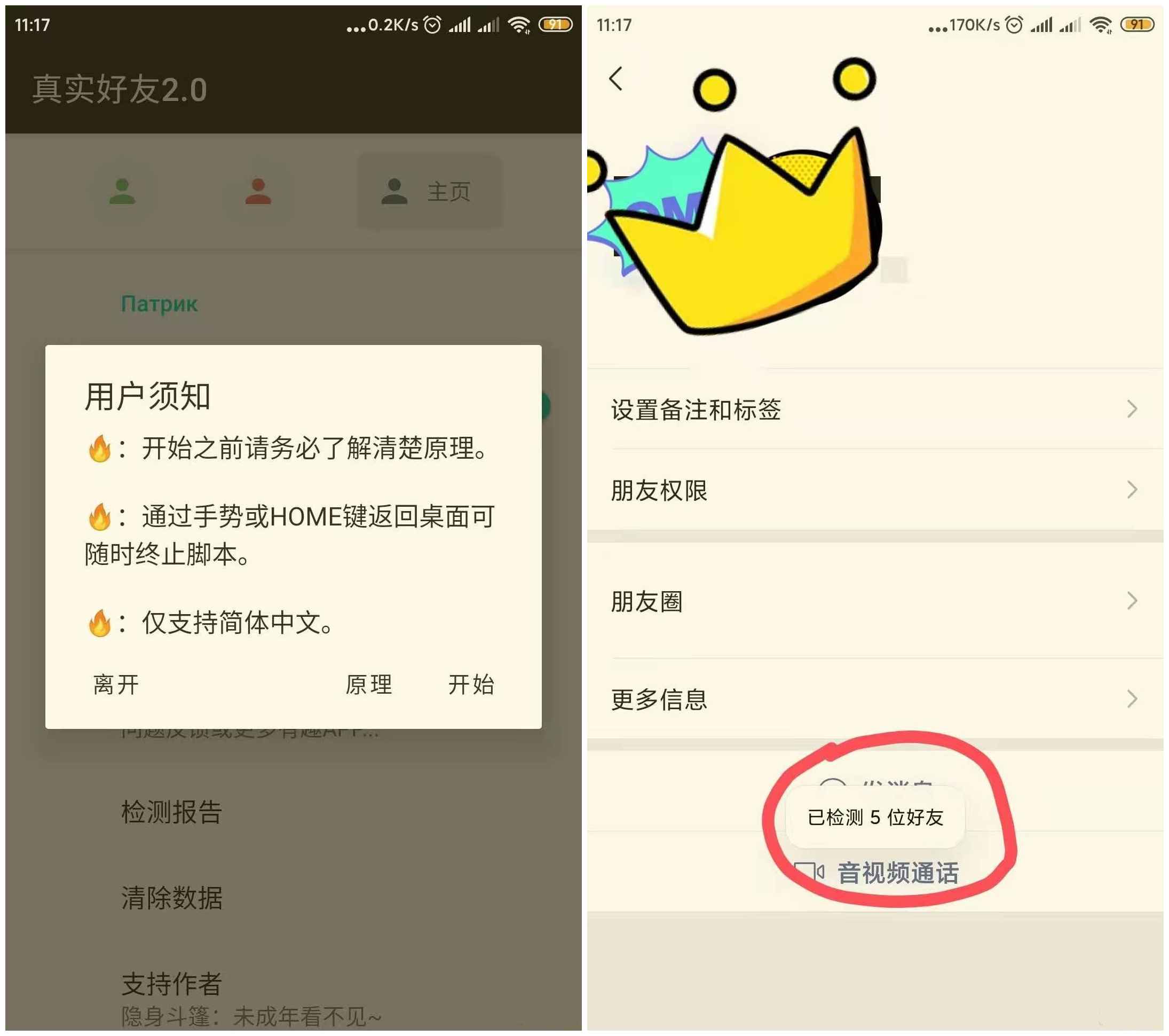 之前小编发布过 PC版的检测微信好友单向工具:WeTool_v6.0.0 免打扰检测微信单向好友 本文这也是李跳跳新出品的一款安卓单向好友检测工具,一段自动化脚本自动完成好友检测;需要开启无障碍服务,点击开始检测就行了,在软件上会显示异常和正常微信号(对方不会收到任何消息);免打扰检测微信单向好友工具,李跳跳之前也出品了:李跳跳v1.75 自动跳过APP广告工具 确实很实用,用过的都知道;有需要的朋友可以下载,检测一下那些微信好友已经把你删除了,你却还不知道呢!